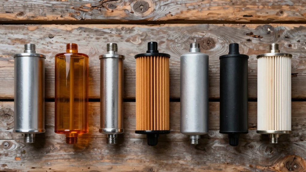 Conversely, higher micron ratings like 40-150 microns work well for small engines, trapping larger contaminants while maintaining satisfactory fuel flow. You’ll replace them less often, though they provide less thorough protection.